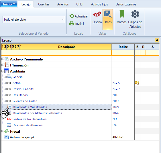 Los movimientos que fueron muestreados en el muestreo dirigido se pueden revisar en forma consecutiva por fecha, tipo y número.