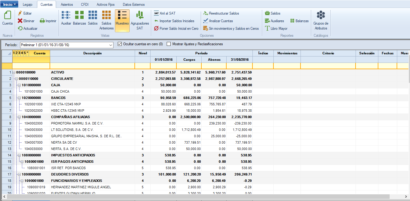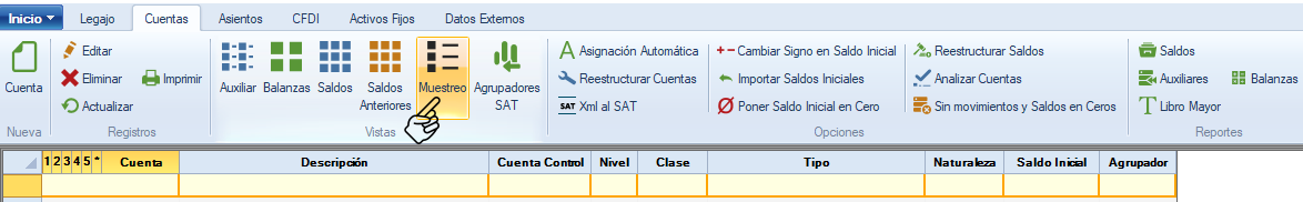 El muestro dirigido se realiza desde la pestaña “Cuentas”, selecciona, en "Vistas", "Muestreo".