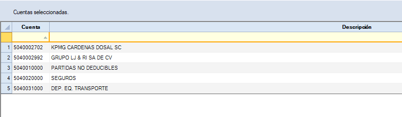 Al dar clic muestra la siguiente ventana, indicando las cuentas que serán muestreadas: