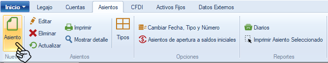 Captura cualquier tipo de asiento que necesites, incluidos Ajustes y Reclasificaciones. Da clic en "Asiento".