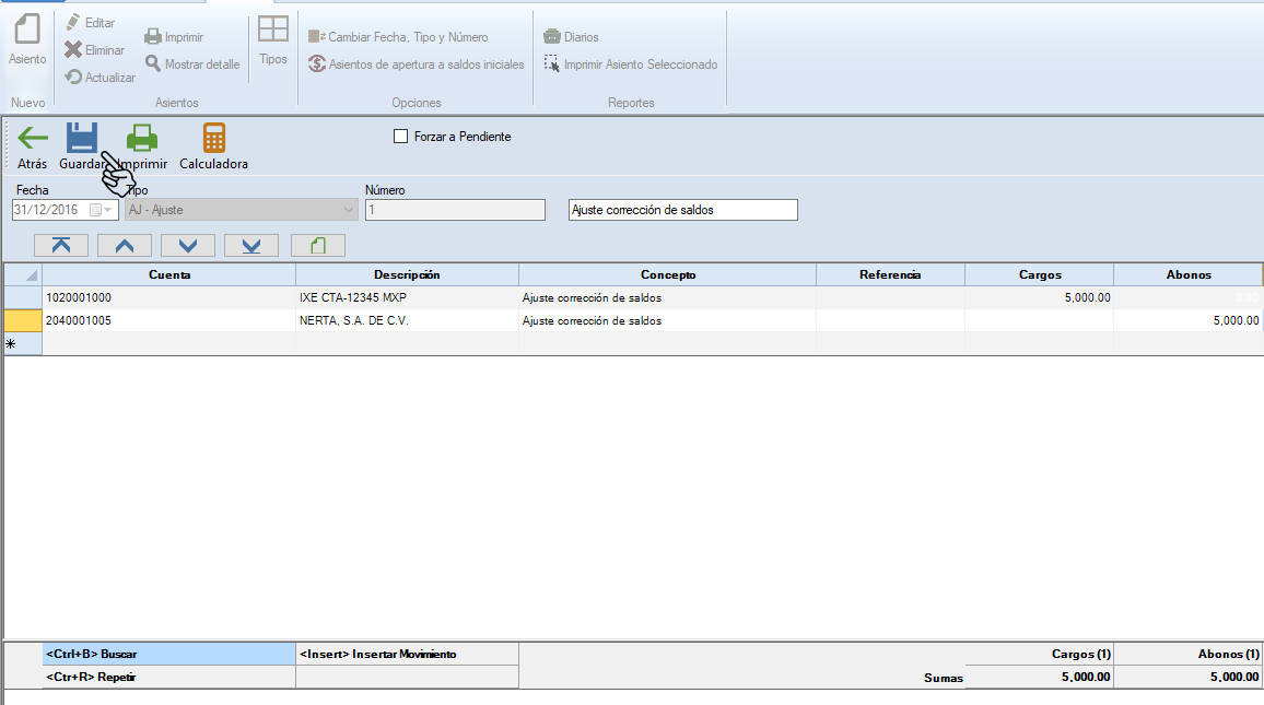 Da clic en "Guardar" para guardar el asiento y sea aplicado en automático en las cédulas del sistema.