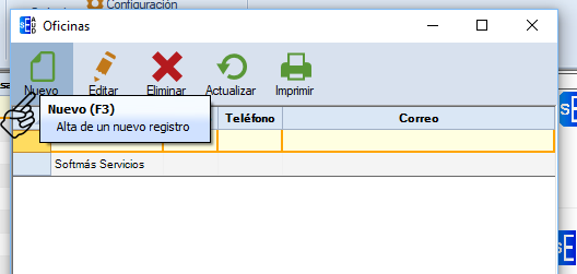 Selecciona "Nuevo" y captura todos los datos correspondientes a la oficina o sucursal.