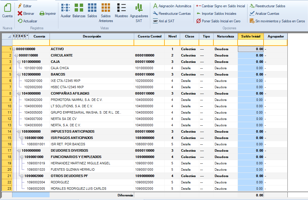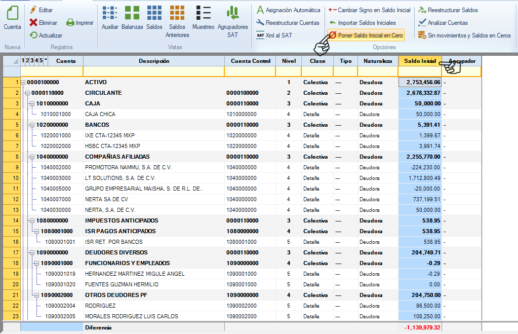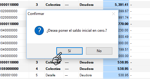 Selecciona todos los importes de la columna "Saldo Inicial". Da clic sobre la opción "Poner Saldo Inicial en Cero".