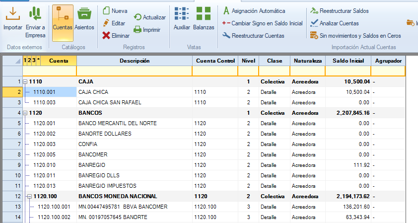 Al concluir el proceso se presentarán las cuentas ya con el caracter correcto.