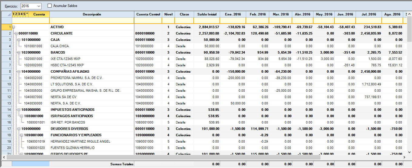 Se cambiará el catálogo de cuentas por los saldos mensuales anteriores. Se muestran por default solo cuentas que tienen movimientos o saldo inicial.