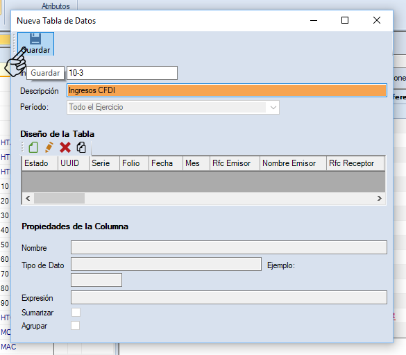 Da clic en “Guardar” para crear la tabla de datos con estructura para XML.