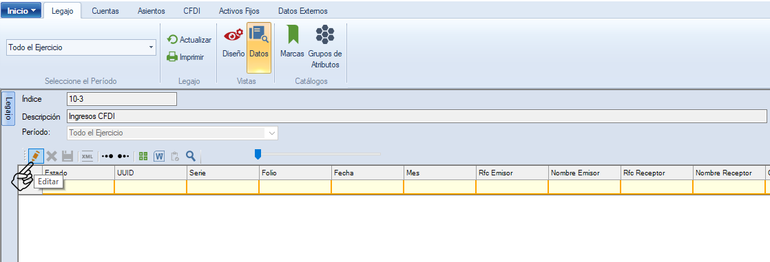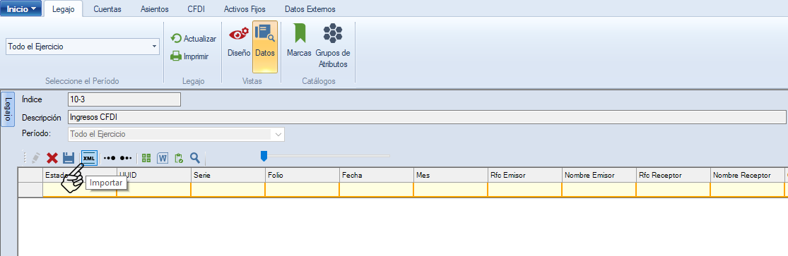 Da clic en en botón "Editar" para habilitar la opción de "Importar" XML.
