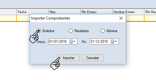 Se presenta la siguiente pantalla. Indica el tipo de comprobante que necesites y da clic en "Importar".