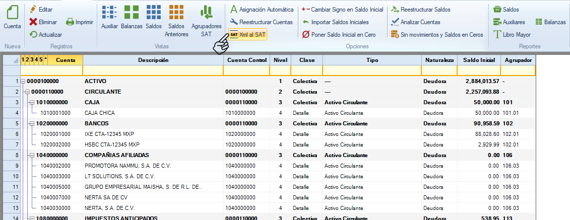 En esta opción se generan los XML, de contabilidad electrónica, que se envían al SAT. Da clic en "Xml al SAT".