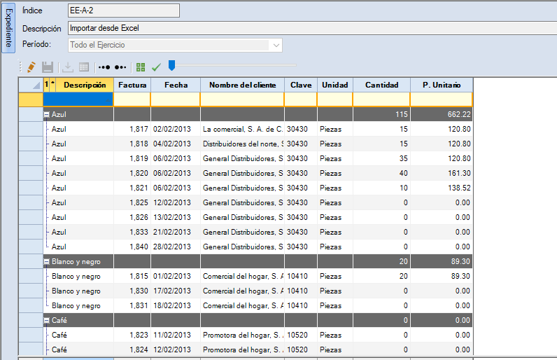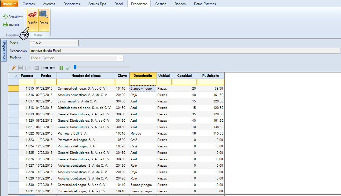 Se tiene la opción de agrupar la información de la tabla de datos para otro tipo de análisis. En el siguiente ejemplo se desea agrupar por colores, es decir por la "Descripción". Da clic en vistas "Diseño".