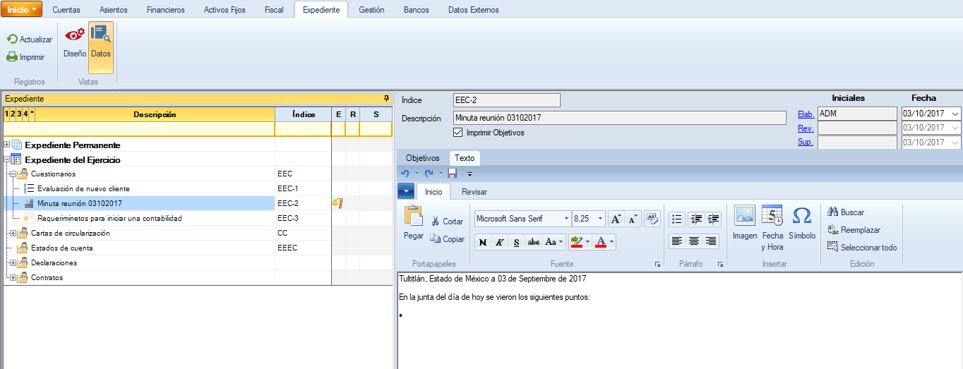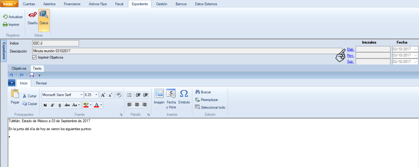 Da clic sobre "Elab.", si eres el usuario que elaboró el papel de trabajo, o en "Rev.", si eres quien lo revisó o en "Sup.", si eres quien supervisó.
