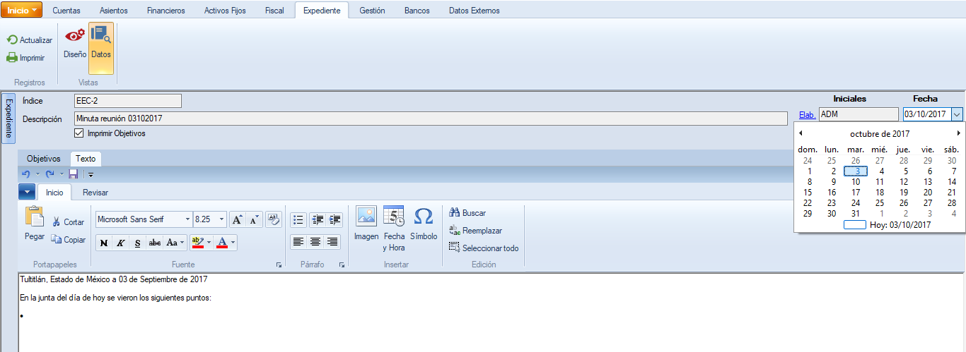 Una vez indicadas las iniciales correspondientes podrás editar la fecha.
