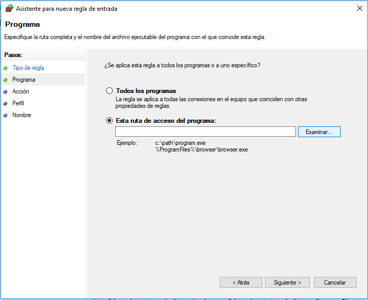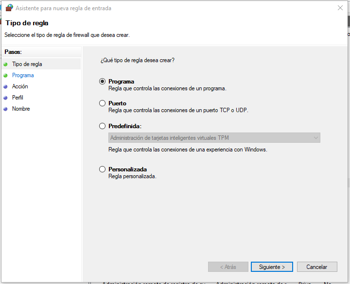 A continuación elegimos la opción programa y damos clic en el botón siguiente.