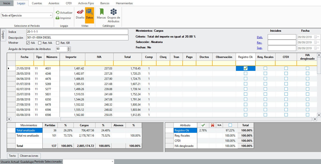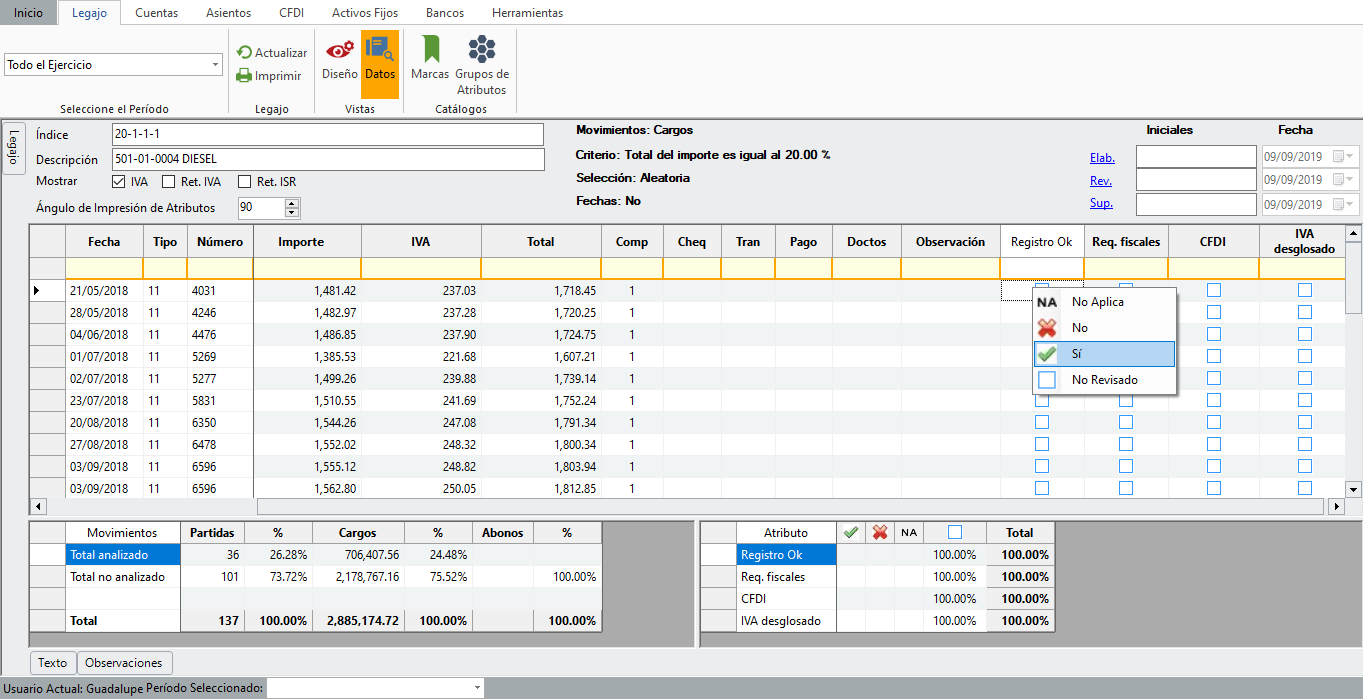 Se pueden seleccionar varios movimientos a la vez y aplicar el atributo de a todos ellos. En la parte inferior derecha observarás un resumen con los atributos calificados.