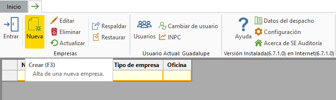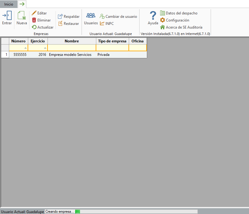 Al terminar el proceso se observará ya creada la empresa en el listado de empresas.