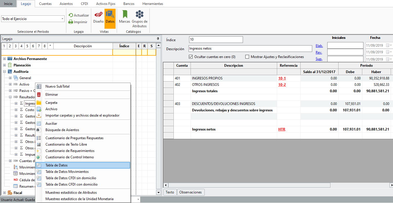 La tabla quedará lista para hacer análisis por medio de estadísticas, ponerle marcas de auditoría, insertar cruces, aplicarle un muestreo estadístico, entre otros usos.