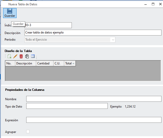 Al terminar de agregar las columnas correspondientes da clic en "Guardar".