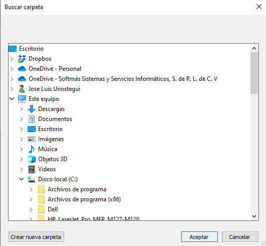 Selecciona la ruta correspondiente y da clic en "Aceptar".