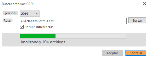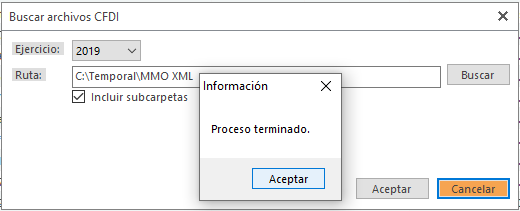 Ahora da un clic en "Aceptar" para iniciar la búsqueda e importación de los CFDI.