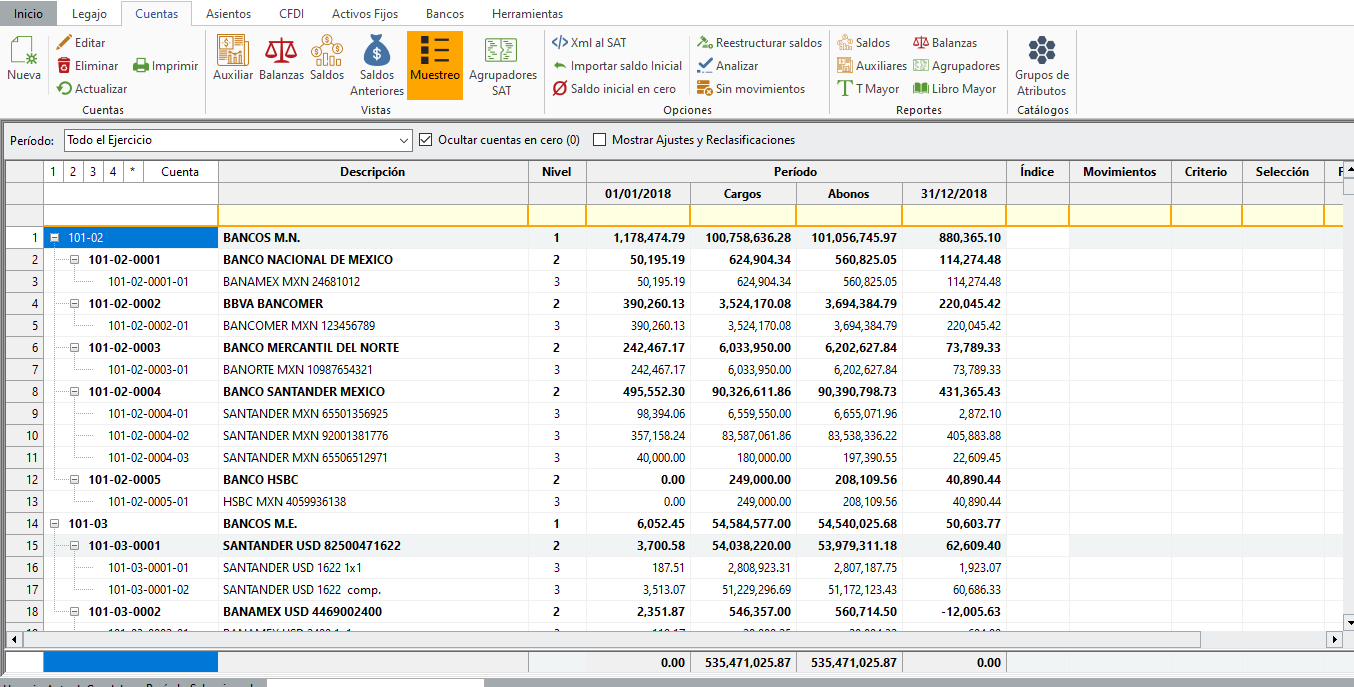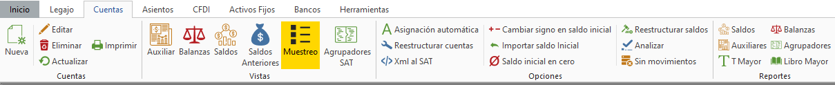 El muestreo dirigido se realiza desde la pestaña “Cuentas”, en "Vistas" da clic en "Muestreo".