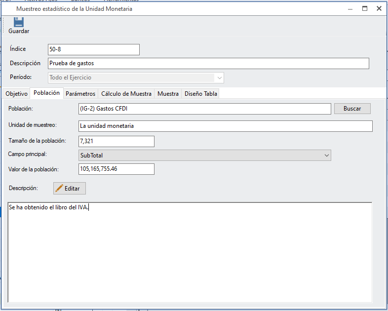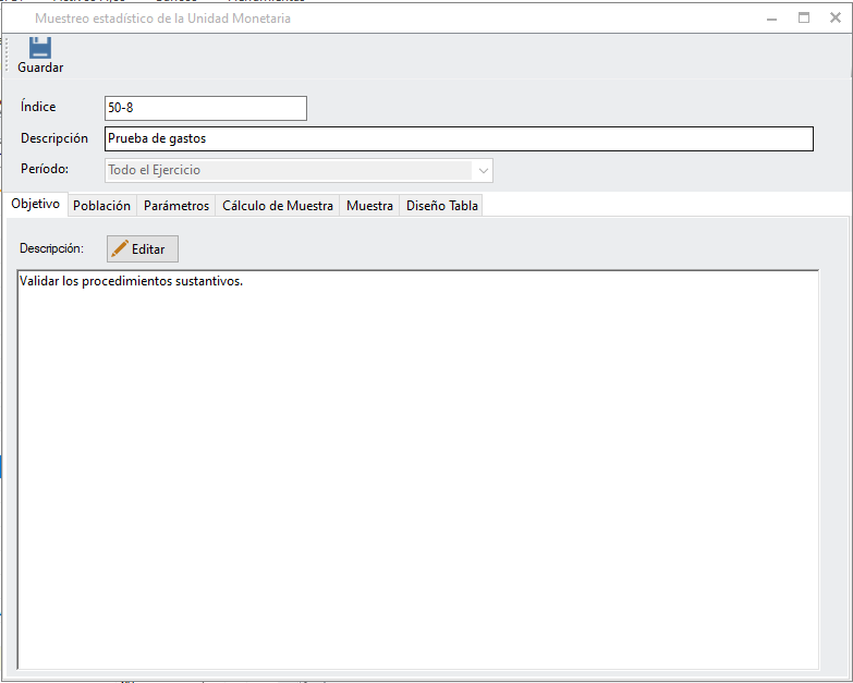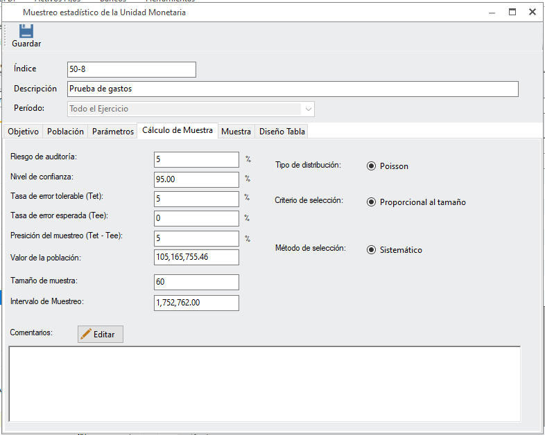 En “Unidad de muestreo” es sobre la unidad monetaria. Podrá ser modificada.