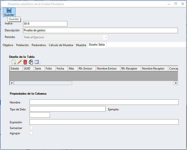 El “Tamaño de la población” es calculada por el sistema de forma automática. Representa la cantidad de elementos contenidos en la tabla.