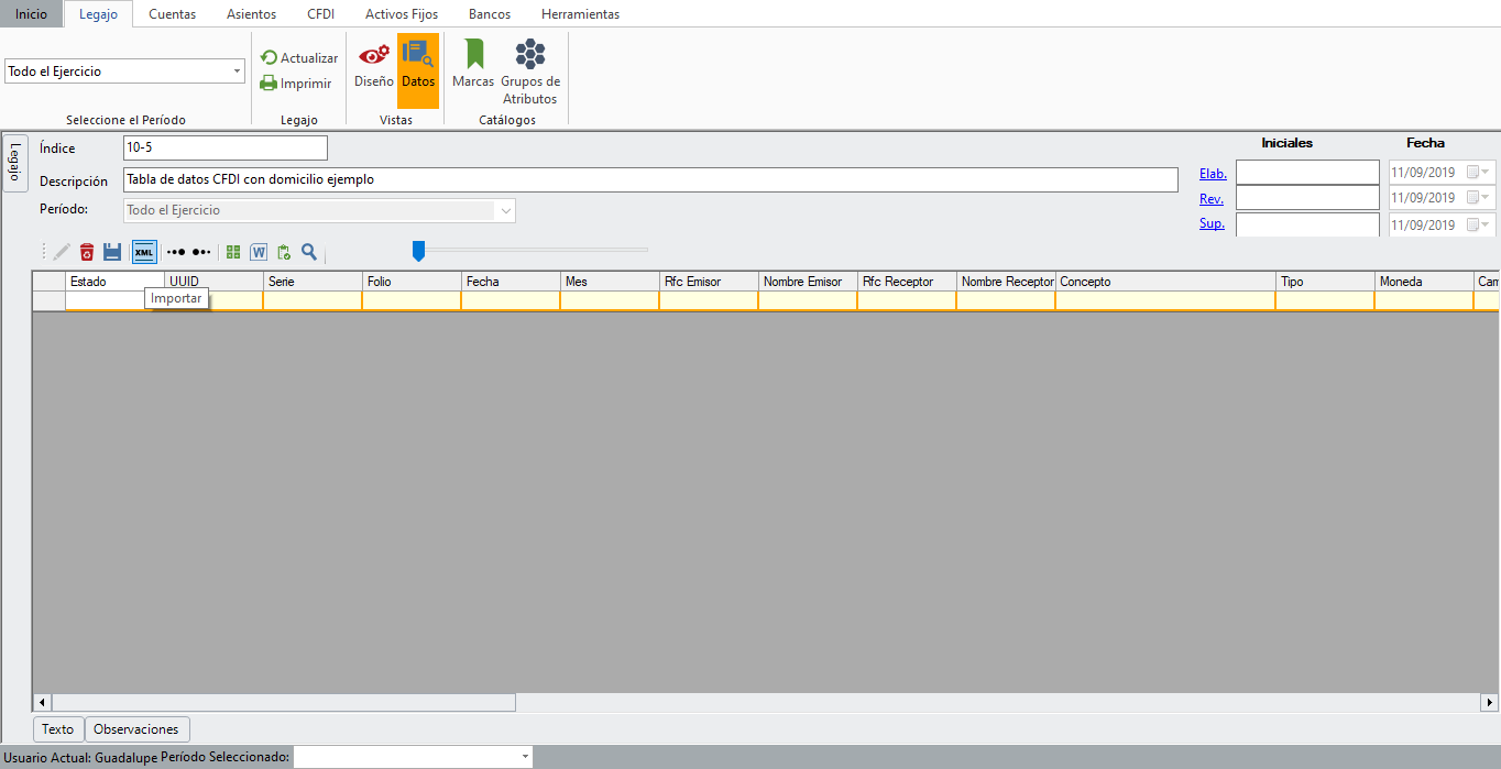 Da clic sobre la opción de "Importar" XML.
