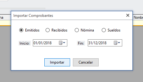 Se presenta la siguiente pantalla. Indica el tipo de comprobante que necesites, el periodo y da clic en "Importar".